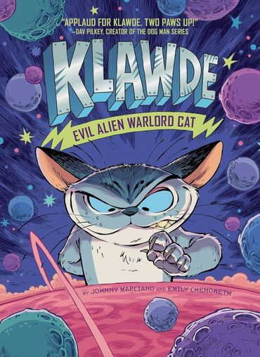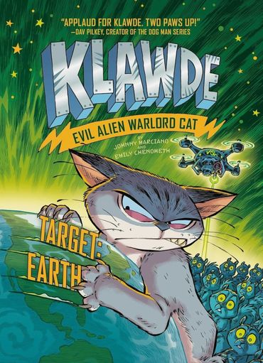 This six book, middle grade chapter book series written by Johnny Marciano and Emily Chenoweth was published by Penguin Workshop. It tells the tale of an exiled, outer space, feline warlord named KLAWDE who is "doomed" to live with a sixth grader named Raj and his family. The pair forge an unexpected friendship.